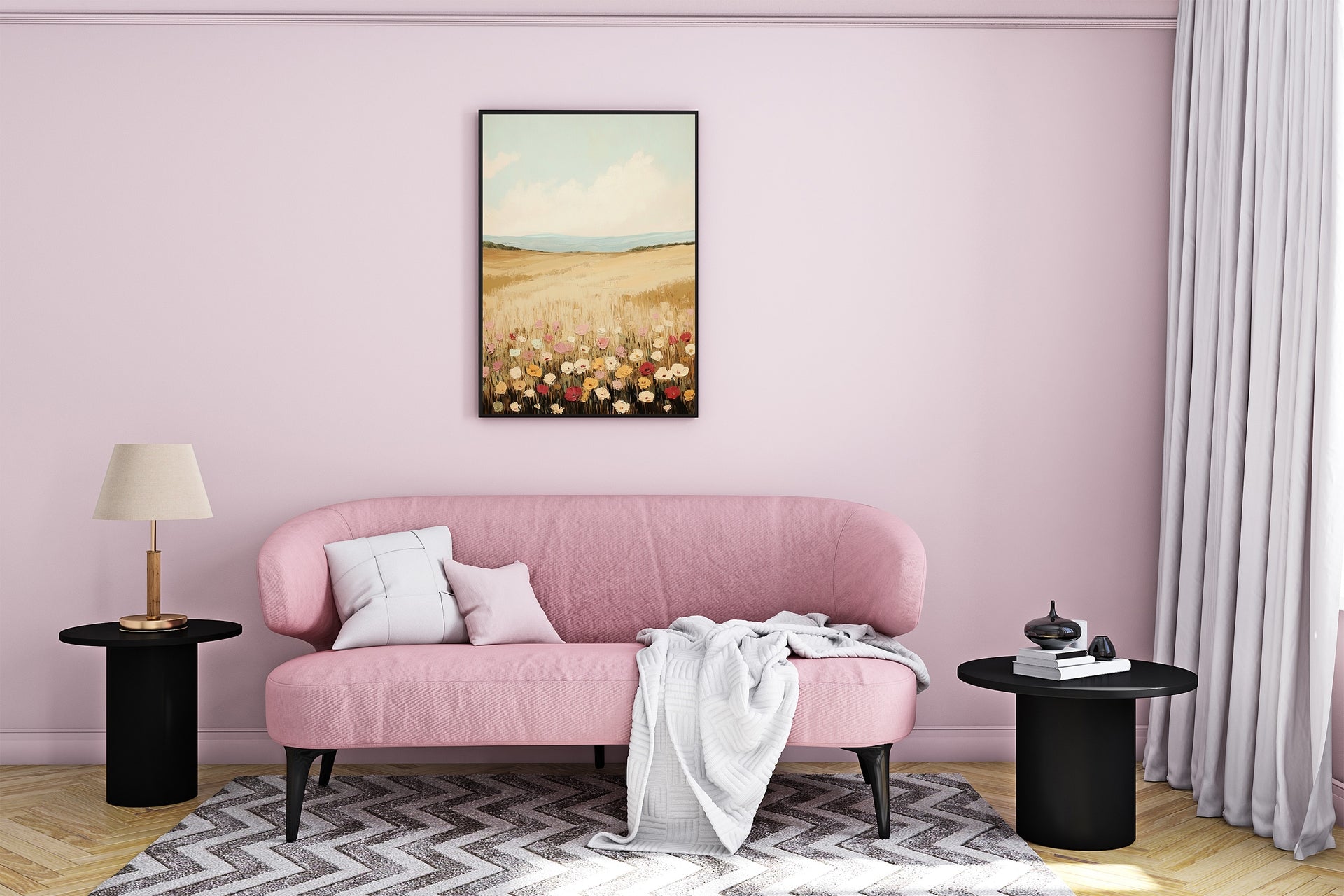 Blooming Wildflower Path” wall art features a scenic trail lined with colorful wildflowers, adding rustic charm and floral beauty to any room or cozy space.