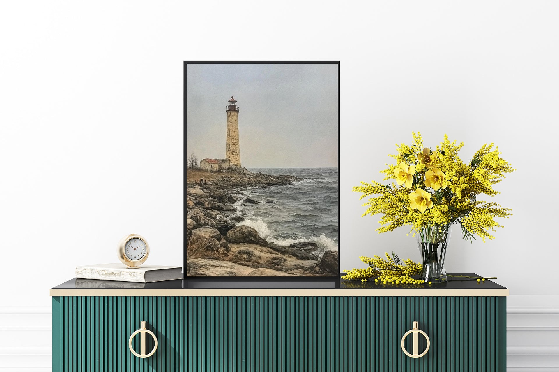 This stunning artwork features a lone lighthouse perched on an ocean cliff, standing tall against the crashing waves and endless sky. A timeless symbol of hope, guidance, and strength, this piece captures the raw beauty of nature and the resilience of human spirit. Perfect for coastal decor or anyone drawn to the sea’s mystery and majesty.