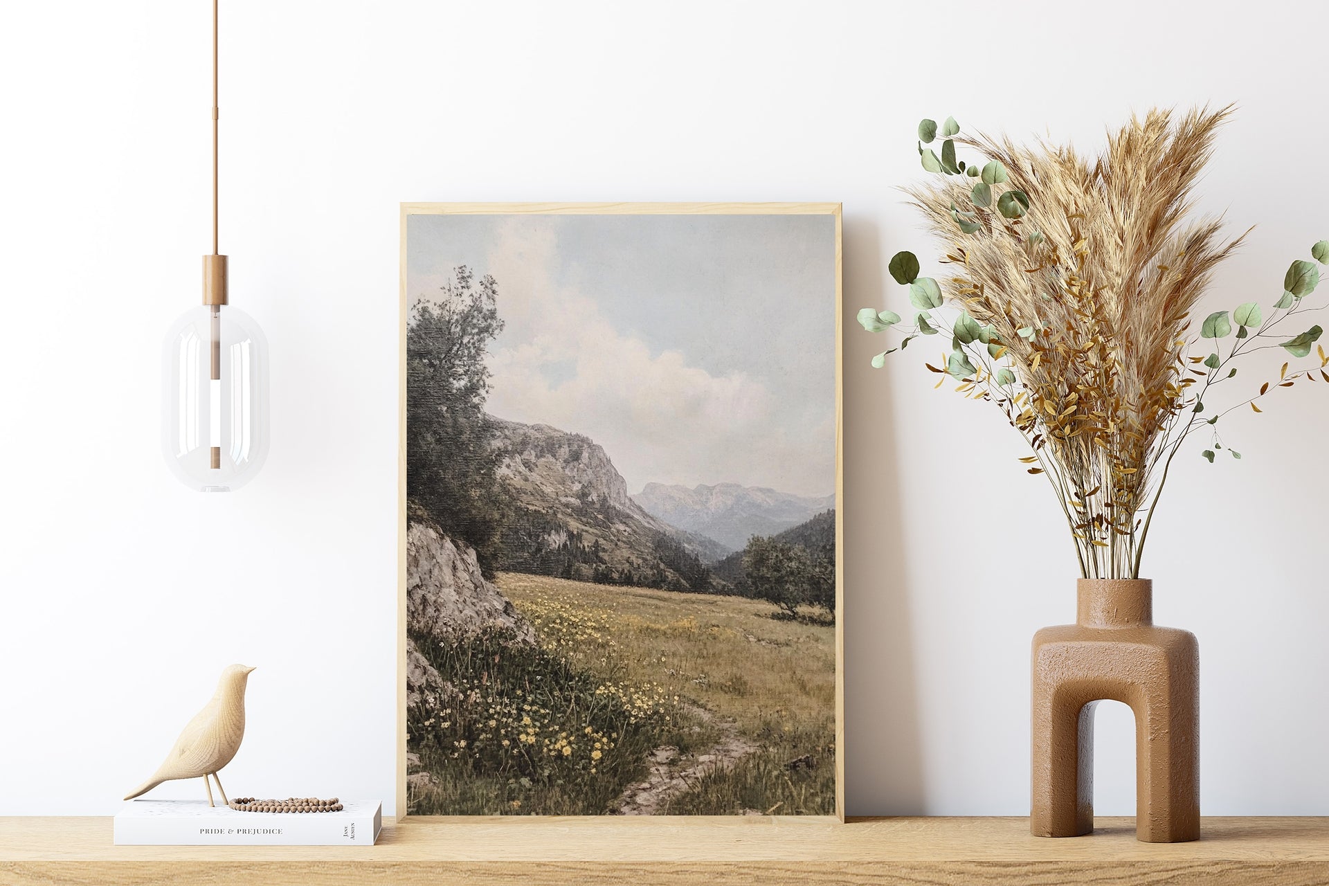 This artwork captures a peaceful mountain field bathed in natural light, where wildflowers sway beneath majestic peaks. Ideal for bringing a calm, nature-inspired touch to your space. Perfect for lovers of the outdoors, rustic charm, and scenic tranquility.