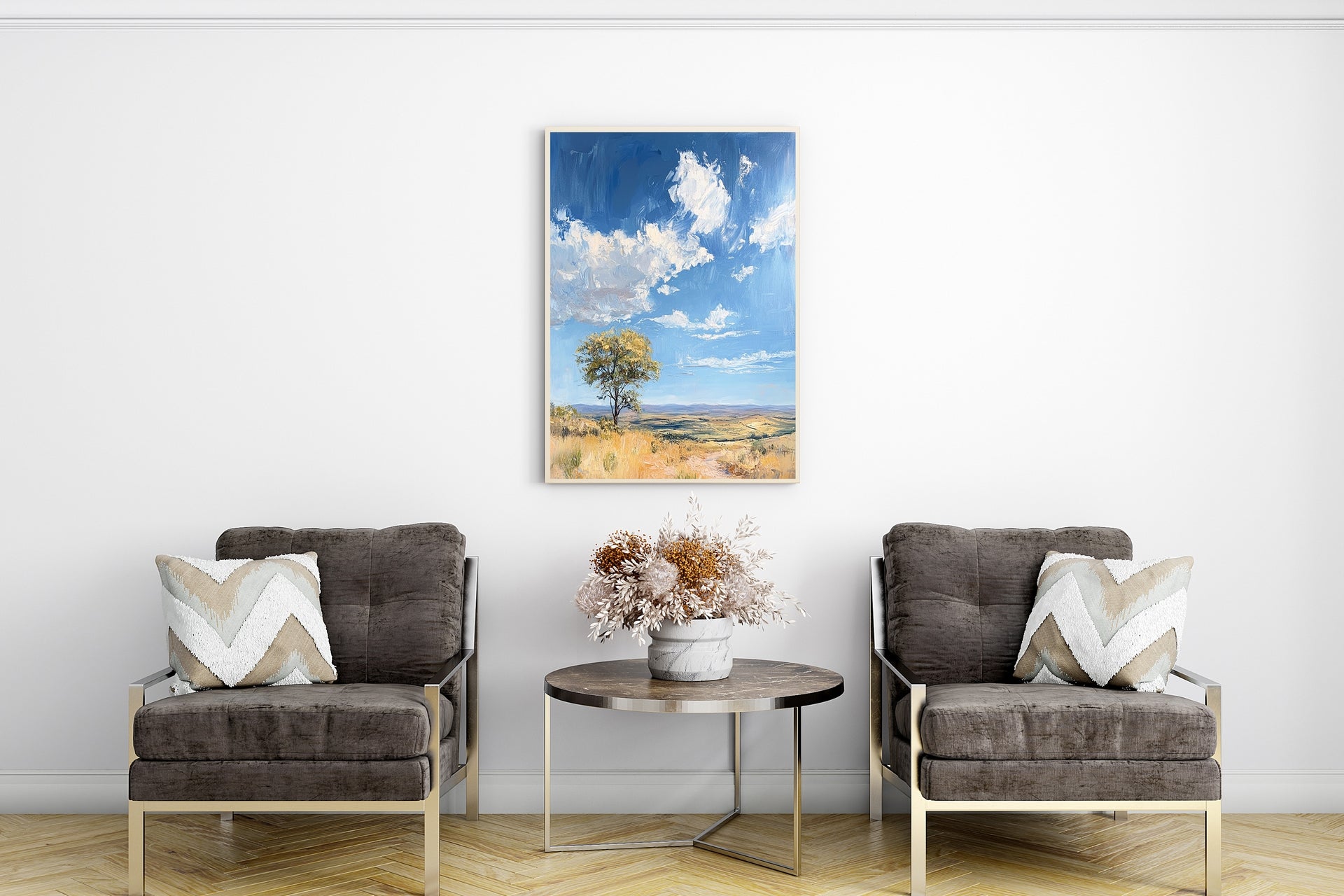 Bring serenity and mystery into your space with Whispers of the Oasis Tree — a captivating piece of tree wall art that evokes the calm and solitude of a lone tree standing tall in a sun-drenched desert oasis. This timeless landscape wall art captures the rustic beauty of nature, blending warm earth tones with soft, dreamlike details. Perfect for adding a natural, grounded touch to your home, this rustic wall art makes a striking centerpiece in living rooms, bedrooms, or entryways. Let your walls tell a story of resilience, peace, and the quiet strength of nature.